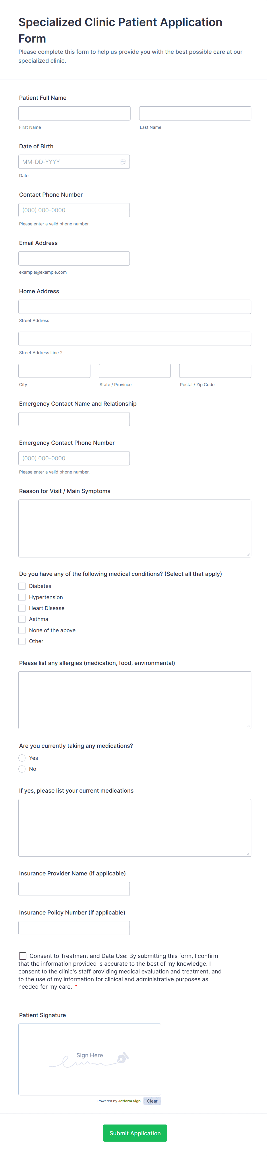 • Healthcare intake forms may require fields for medical history, allergies, and insurance.