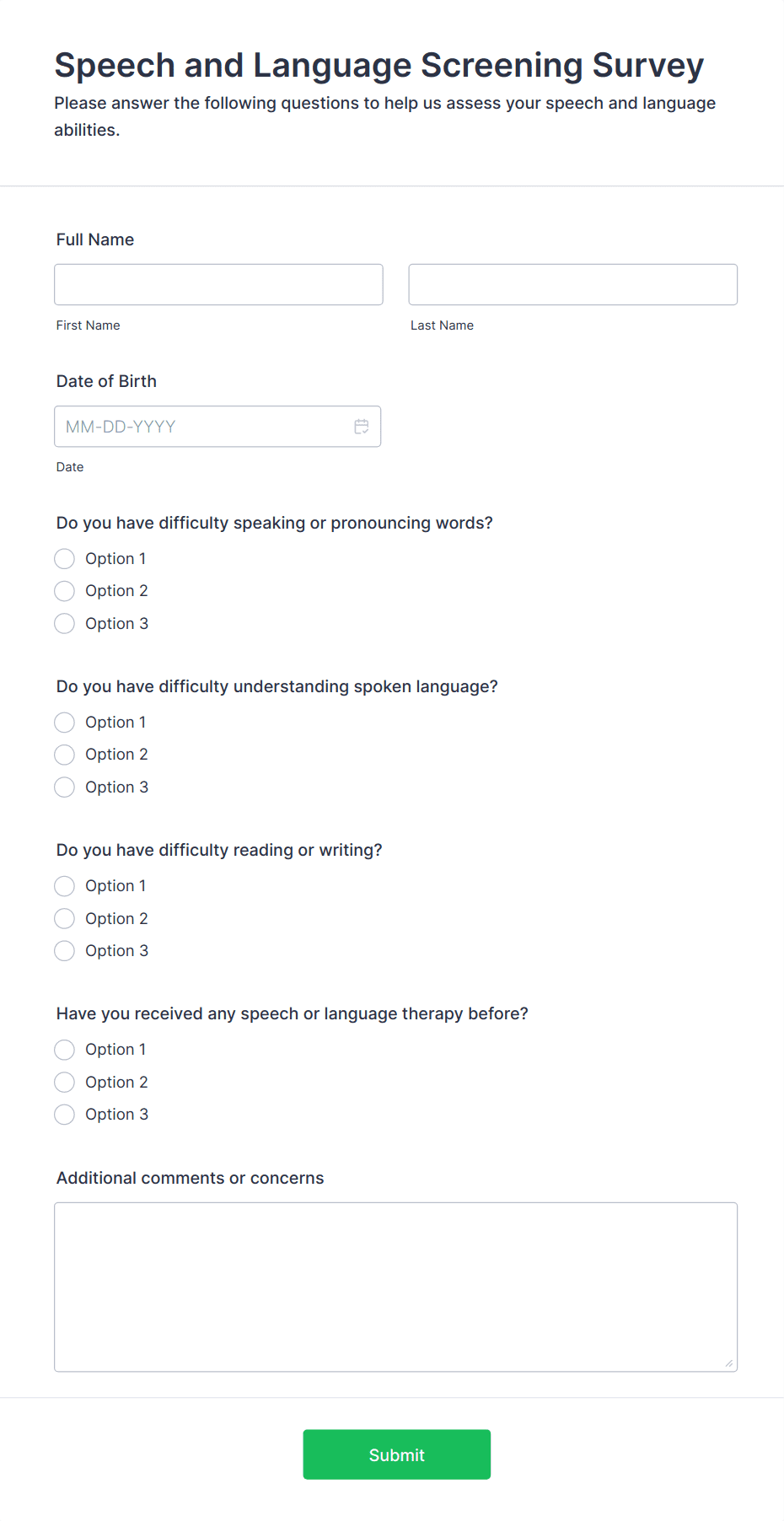 Healthcare surveys are specialized questionnaires designed to collect valuable information from patients, healthcare professionals, and other stakeholders within the medical field. These surveys can be used for a variety of purposes, such as assessing patient satisfaction, gathering feedback on healthcare services, monitoring public health trends, evaluating treatment outcomes, and conducting research studies. Healthcare organizations, clinics, hospitals, and research institutions rely on these surveys to improve patient care, streamline operations, and ensure compliance with industry standards.