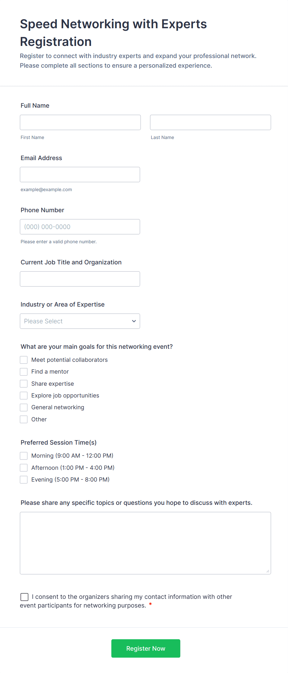 By following these steps, you can create a tailored Conference Registration Form that streamlines the sign-up process, ensures accurate data collection, and enhances the overall experience for both organizers and attendees.