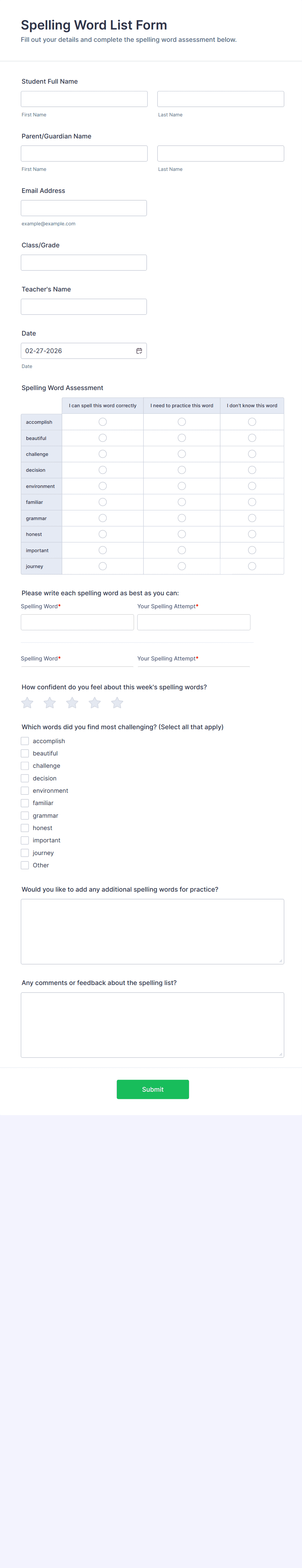 A Vocabulary Quiz is a form template designed to test students' vocabulary knowledge and log their quiz results