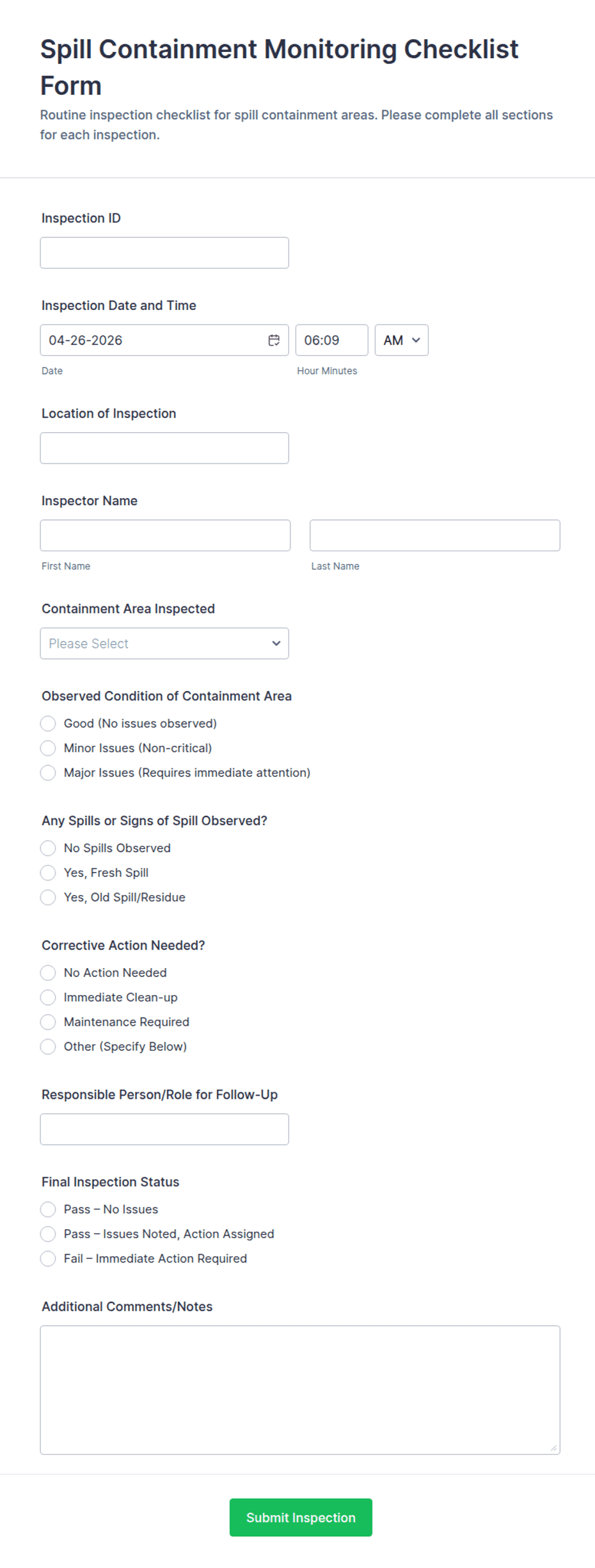By following these steps, you can create a comprehensive Safety Inspection Form that streamlines your inspection process, enhances compliance, and supports a safer work environment.