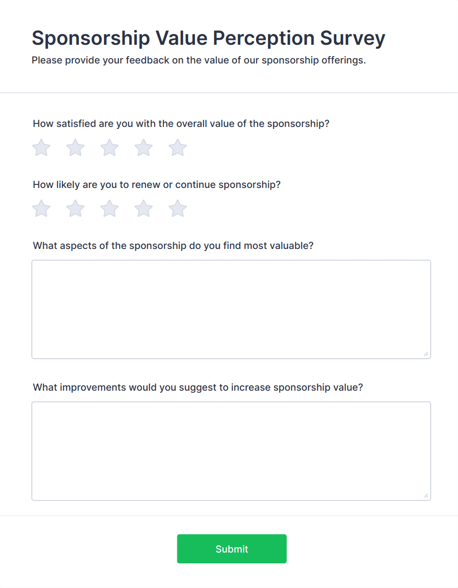 • Product feedback forms may include questions about usability, features, and likelihood to recommend.