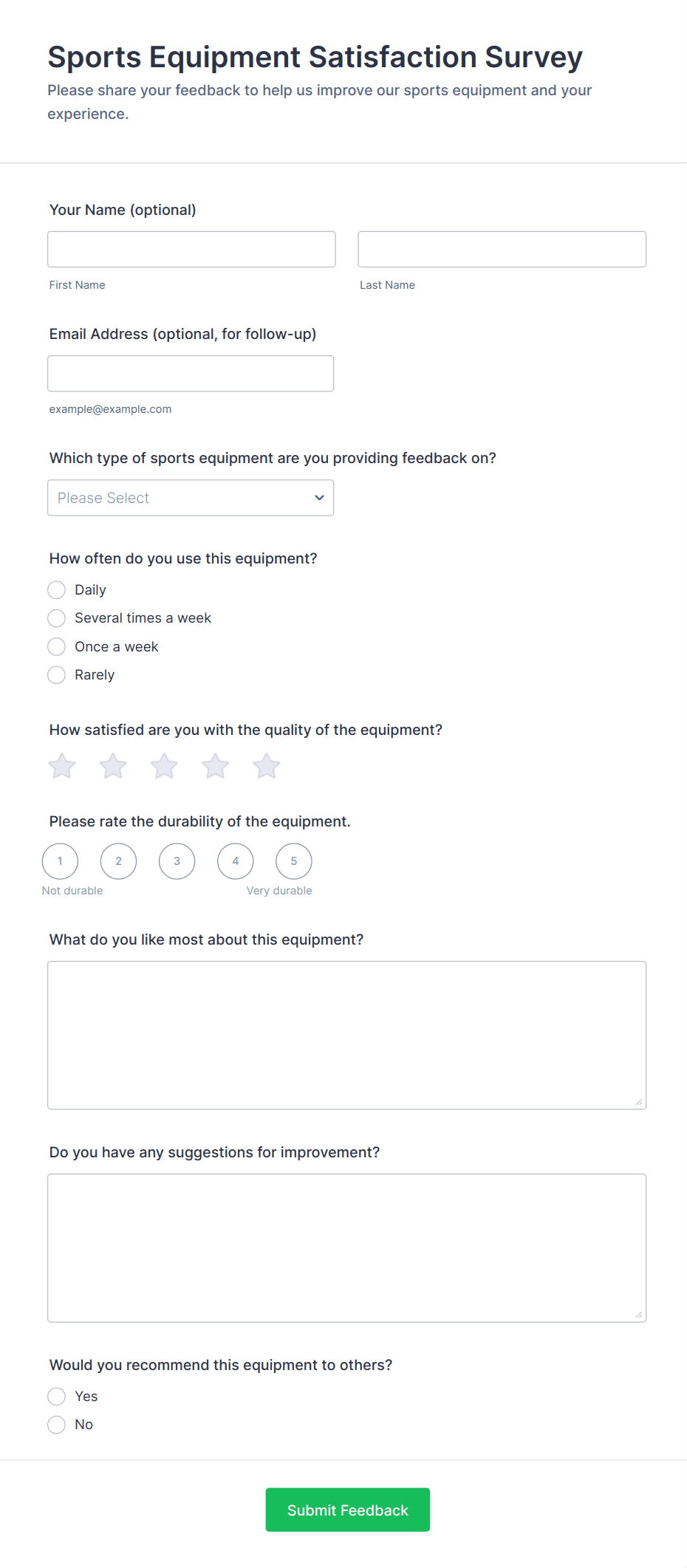 Create an anonymous feedback form in seconds with this ready-made template. Easy to customize and share. Works on any device. No coding knowledge required.
