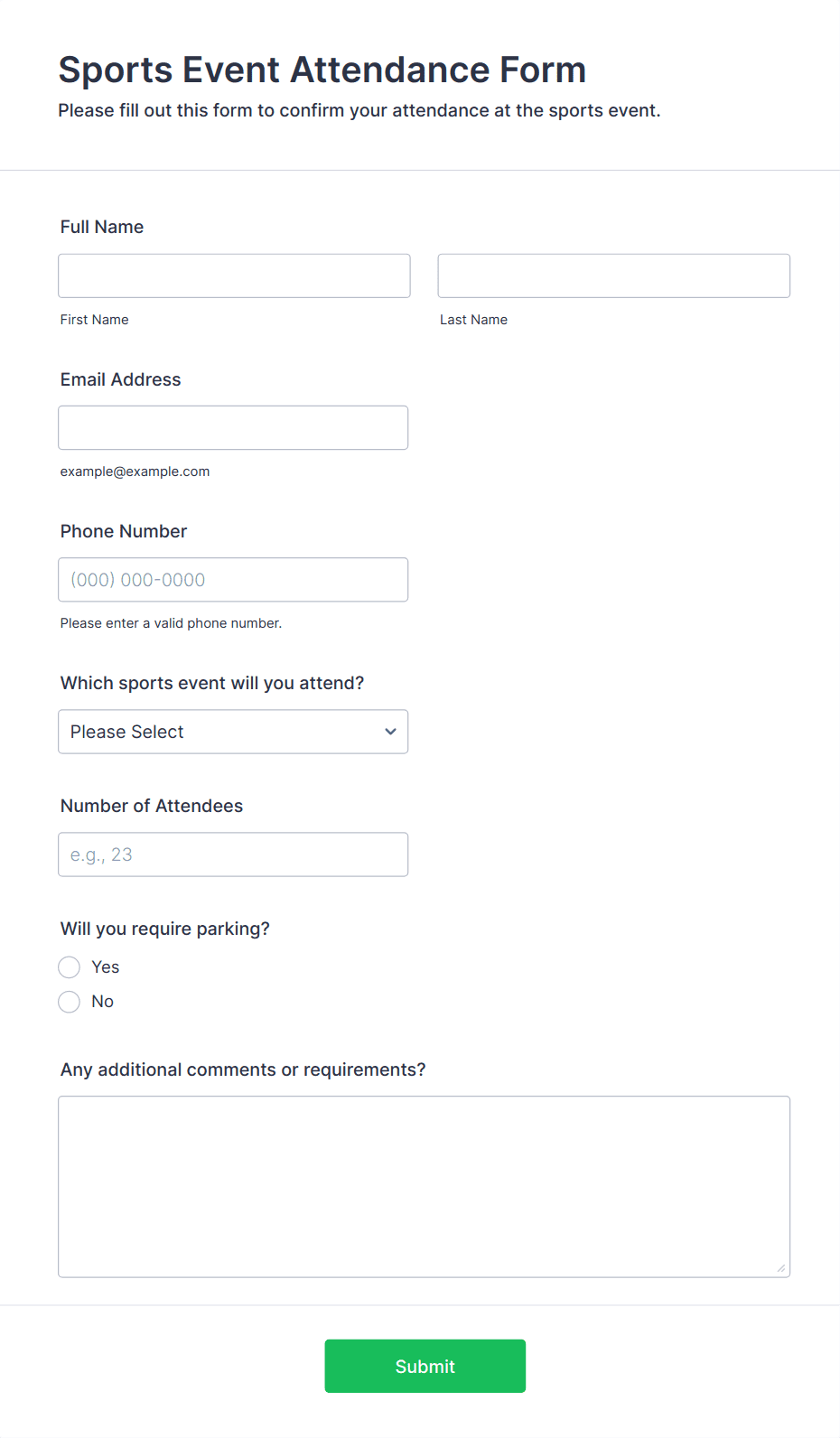• Content and fields vary based on event type: For example, a conference form may include session selection and company details, while a wedding RSVP form might ask for meal preferences and plus-one information.