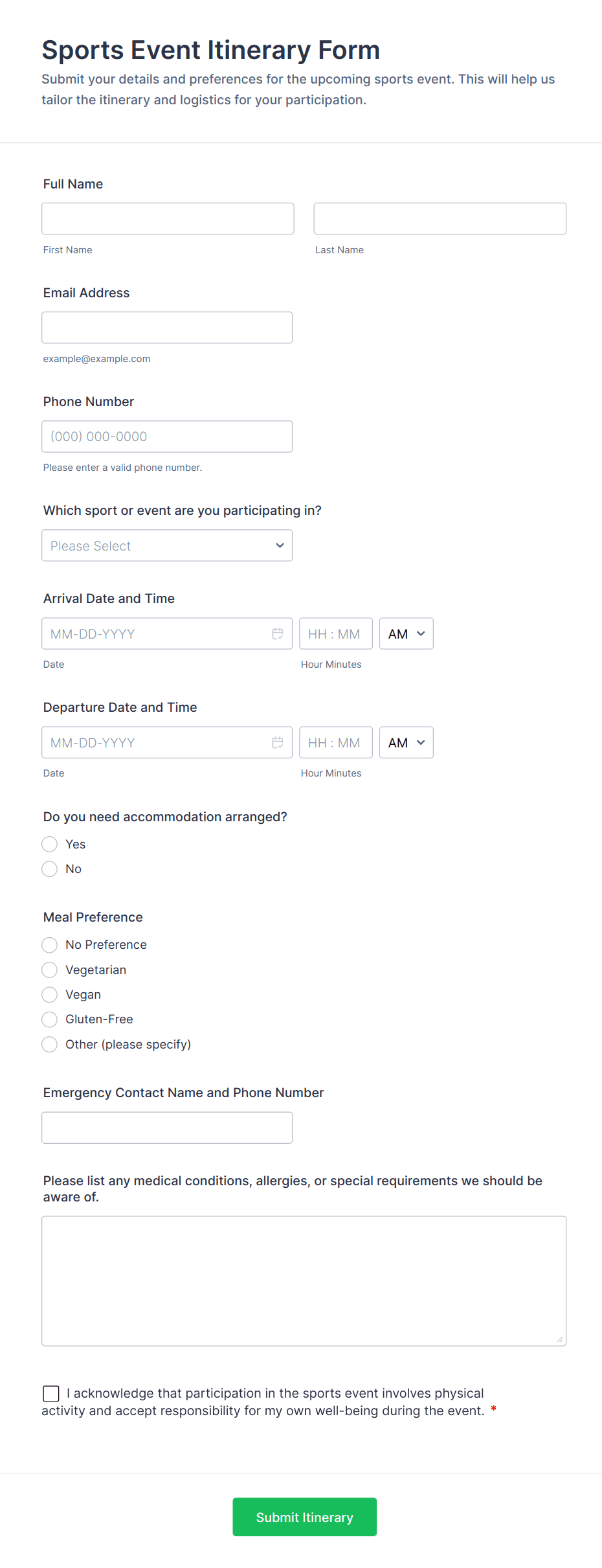 3. What information is typically collected in a sports registration form?