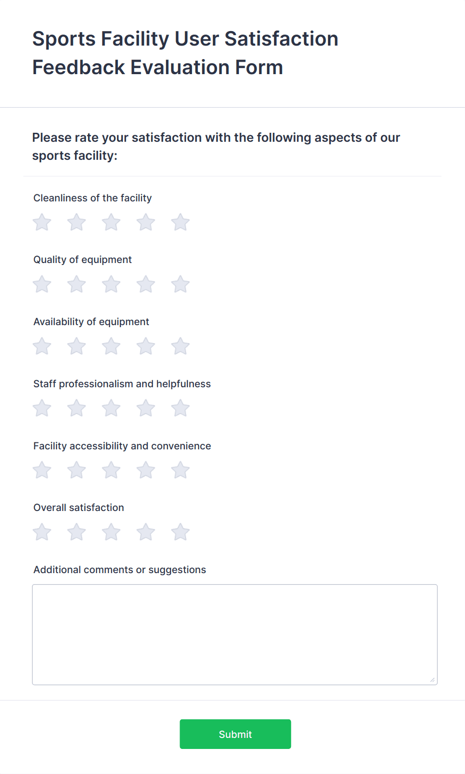 A feedback form is a structured questionnaire used to collect opinions, suggestions, and evaluations from respondents about a product, service, event, or experience.