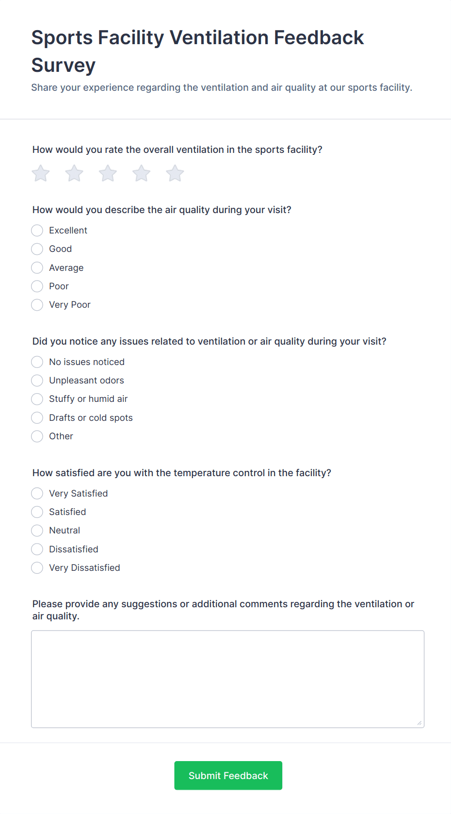 Create an anonymous feedback form in seconds with this ready-made template. Easy to customize and share. Works on any device. No coding knowledge required.