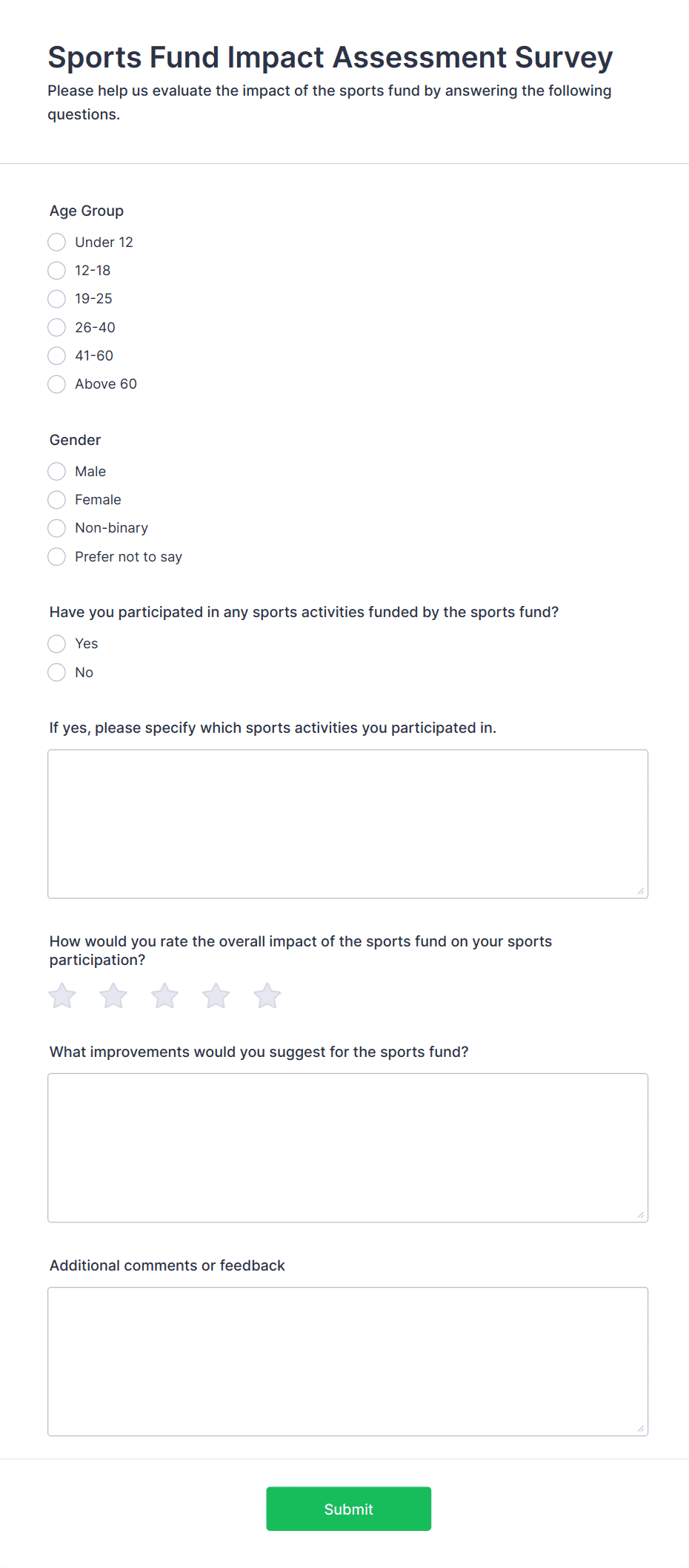 A sports form template is a pre-designed online form used to collect and manage information related to sports activities, such as registrations, waivers, event sign-ups, and feedback.