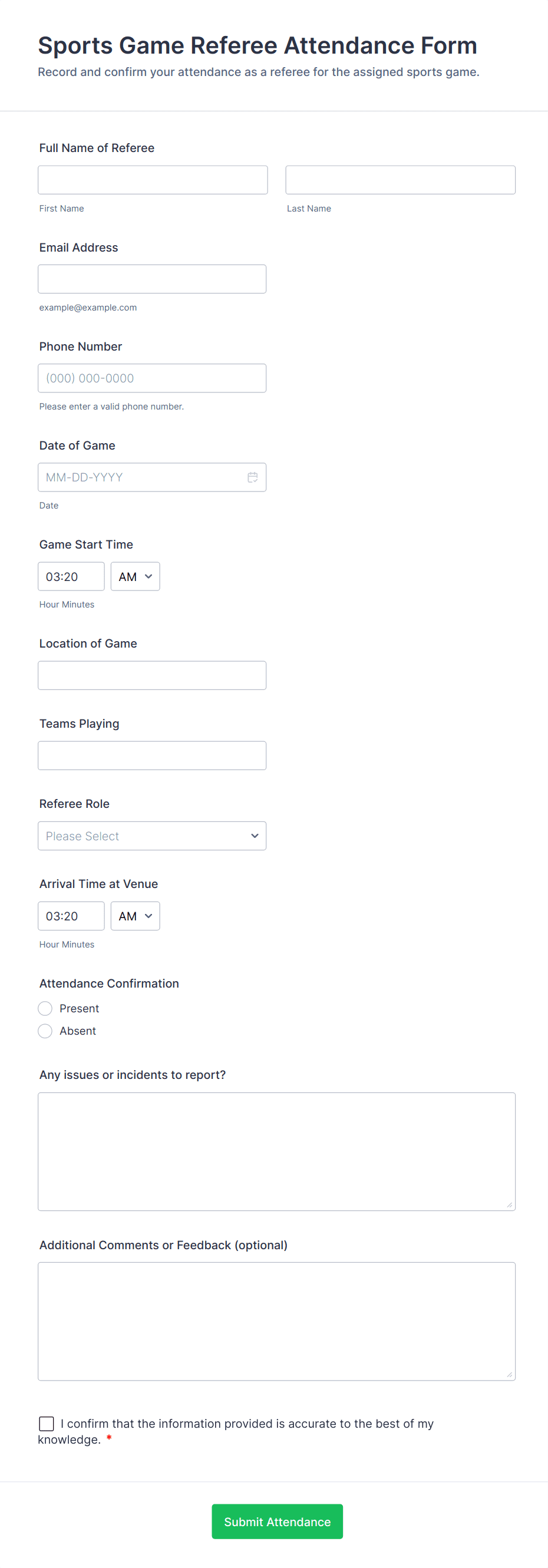 Attendance Form