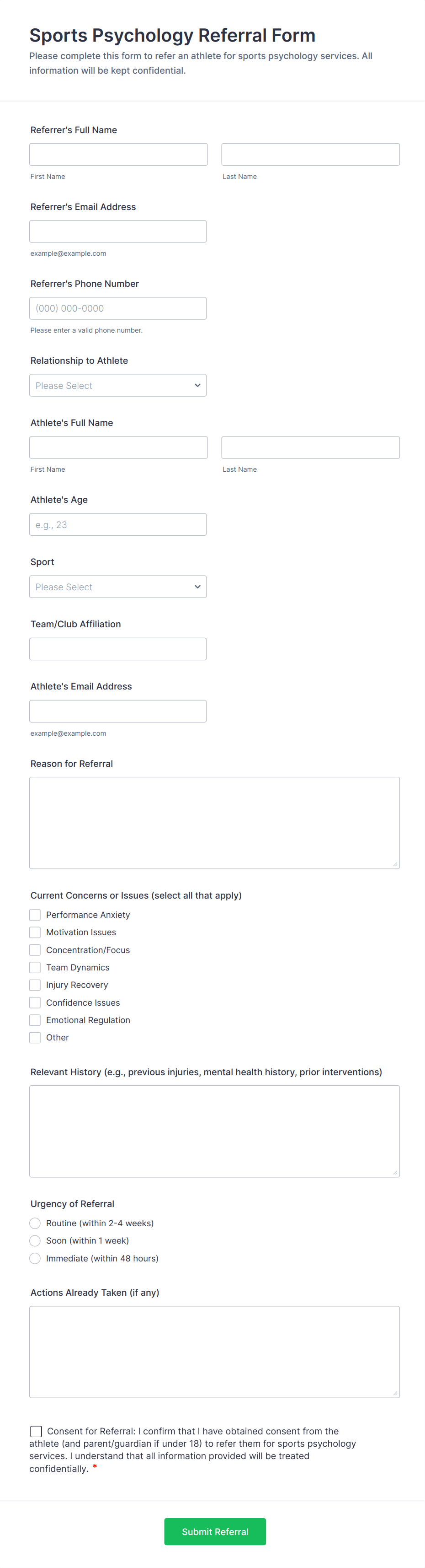 Referral forms are essential tools used to collect and manage information when one party recommends a person, service, or business to another. These forms streamline the process of gathering key details about the referred individual or entity, the referrer, and the context of the referral. Common use cases include employee referral programs, patient referrals in healthcare, client referrals in legal or financial services, and customer referrals in sales and marketing. By standardizing the referral process, organizations can ensure that all necessary information is captured efficiently, reducing miscommunication and speeding up follow-up actions.