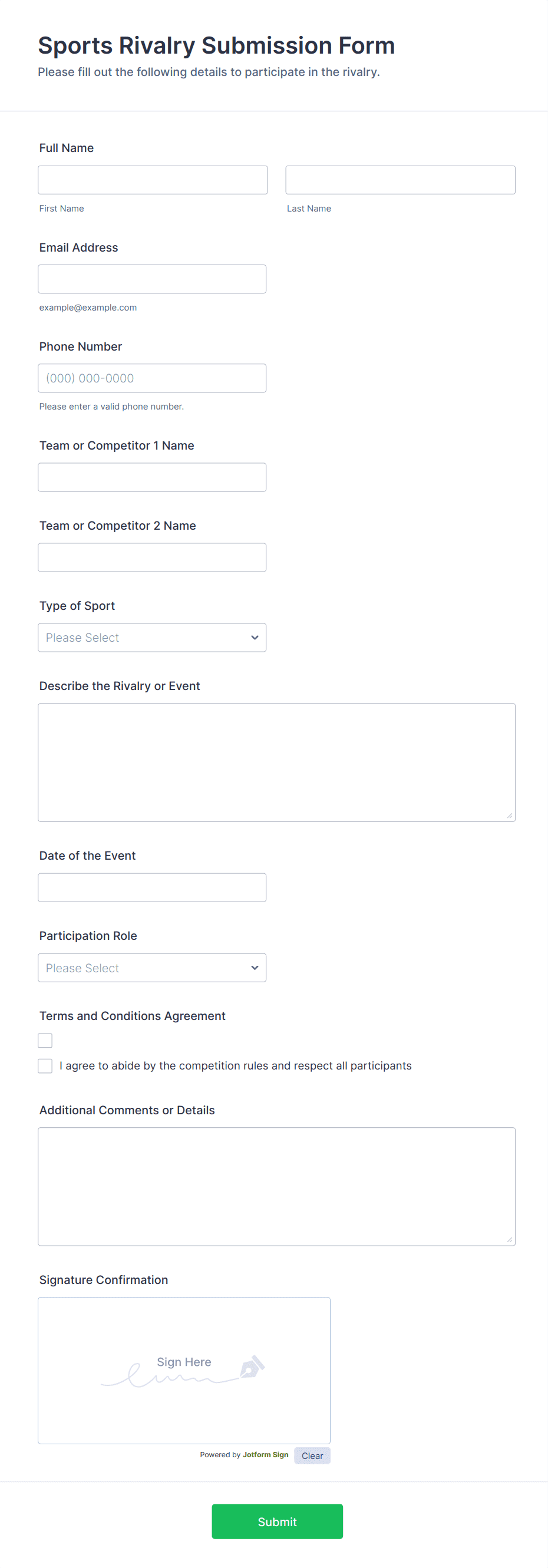 Our forms sports forms are design for mobile, so you can collect signups from users at home or on their mobile devices. Additionally, for users who handle sensitive medical information, Jotform's sports forms are also HIPAA friendly.