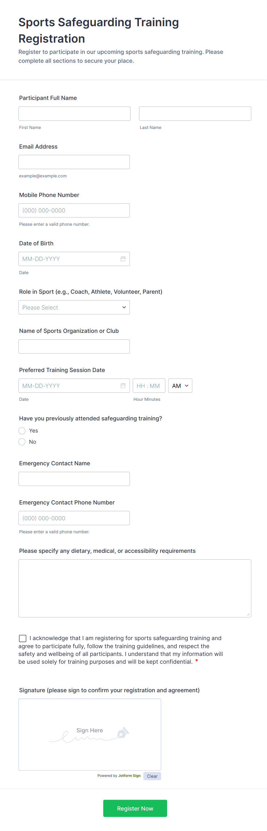 - Registration Forms: Focus on collecting participant details, session preferences, and consent.