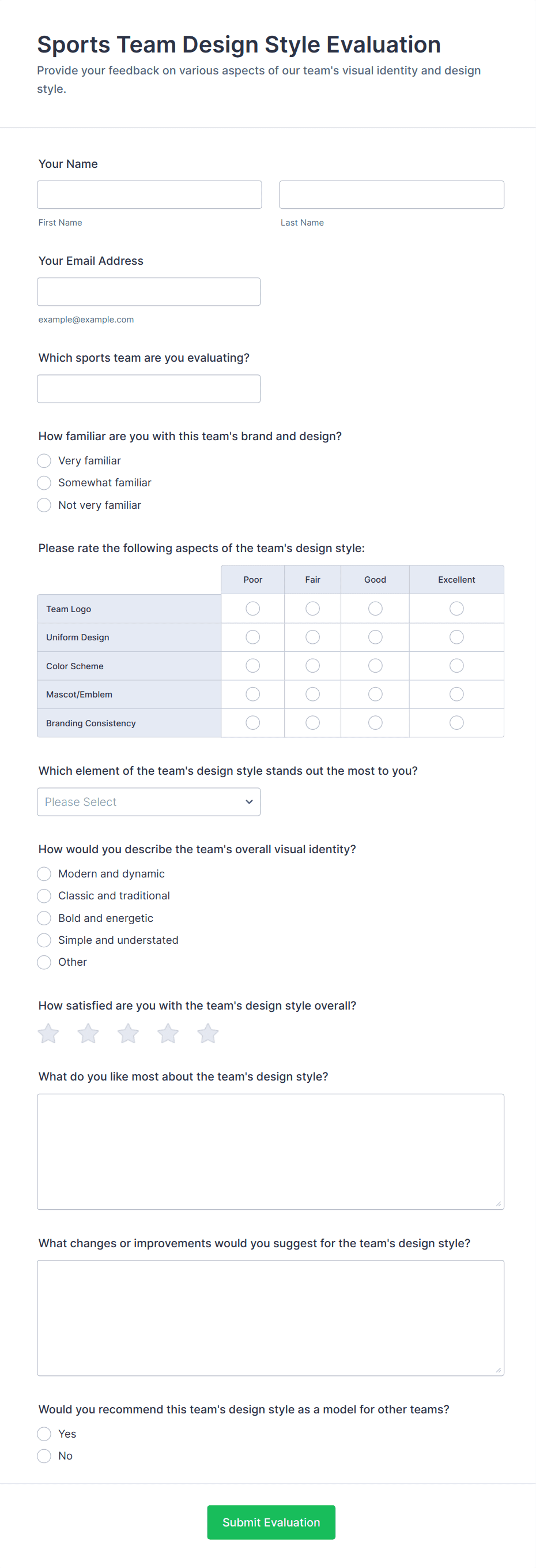 Evaluation Survey Form
