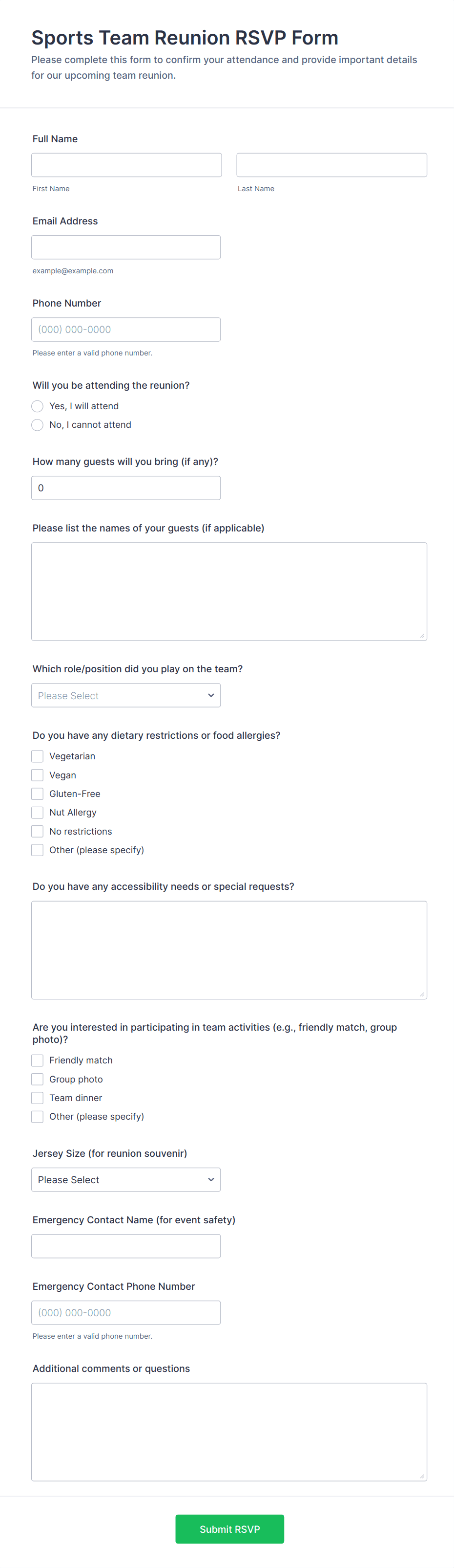 • For casual gatherings, a simple yes/no attendance field and contact information may suffice.