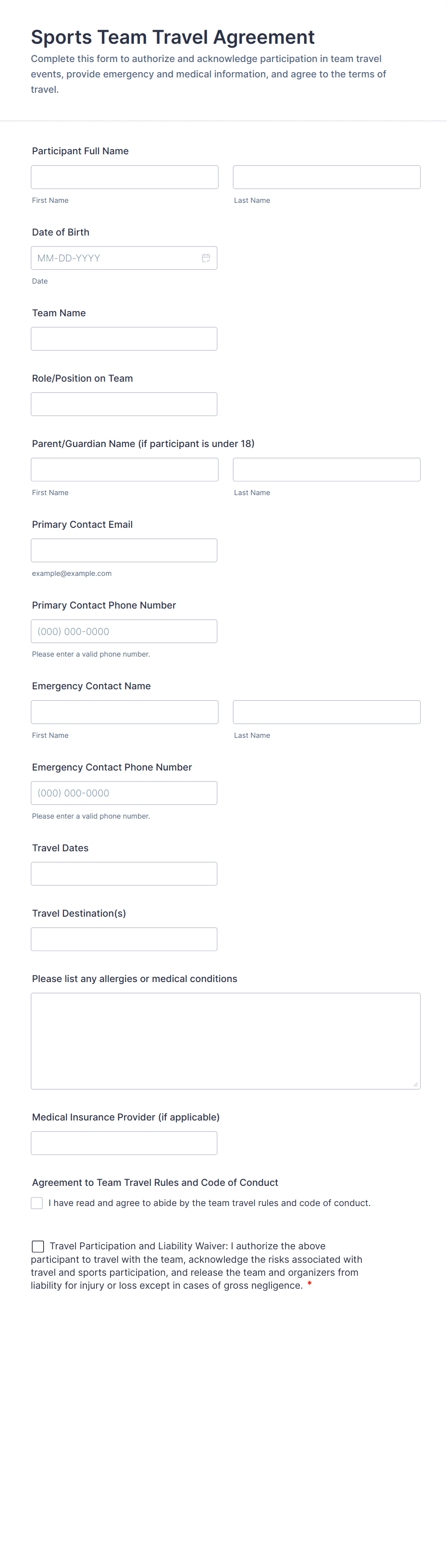 Collect parent or guardian consent for youth league participation with the Youth Sports League Participation Waiver Form, ideal for community programs and school athletics that need fast online data collection and organized form submissions in Jotform.