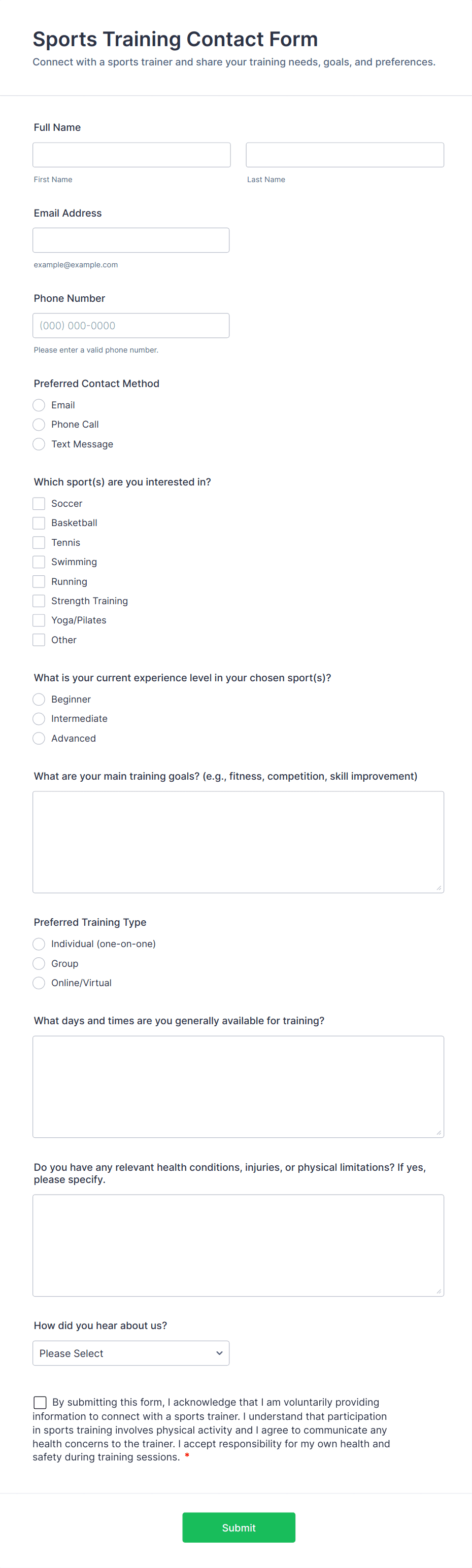 • For specialized use cases, include dropdowns (e.g., inquiry type), checkboxes (e.g., preferred contact method), or file upload fields (for attachments or screenshots).