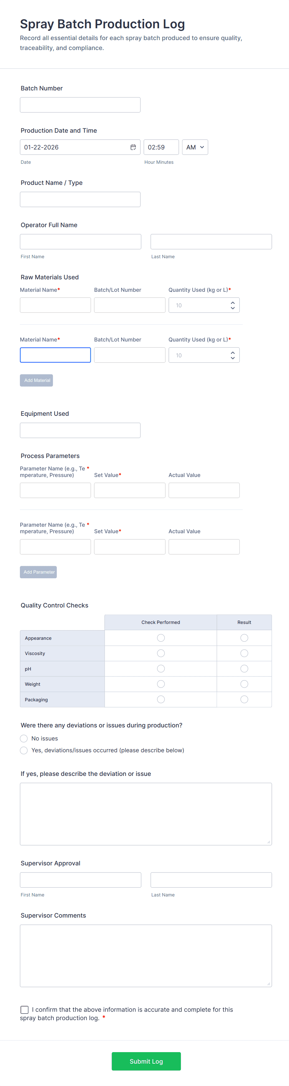 A manufacturing form is a digital or paper-based document used to collect, track, and manage data related to production, quality control, maintenance, inventory, and safety within a manufacturing environment.