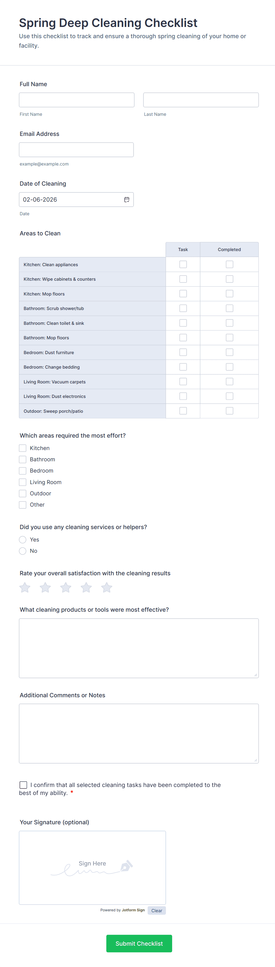 A Cleaning Form is a digital document used to organize, track, and manage cleaning tasks, appointments, inspections, and feedback within cleaning services or facility maintenance operations.