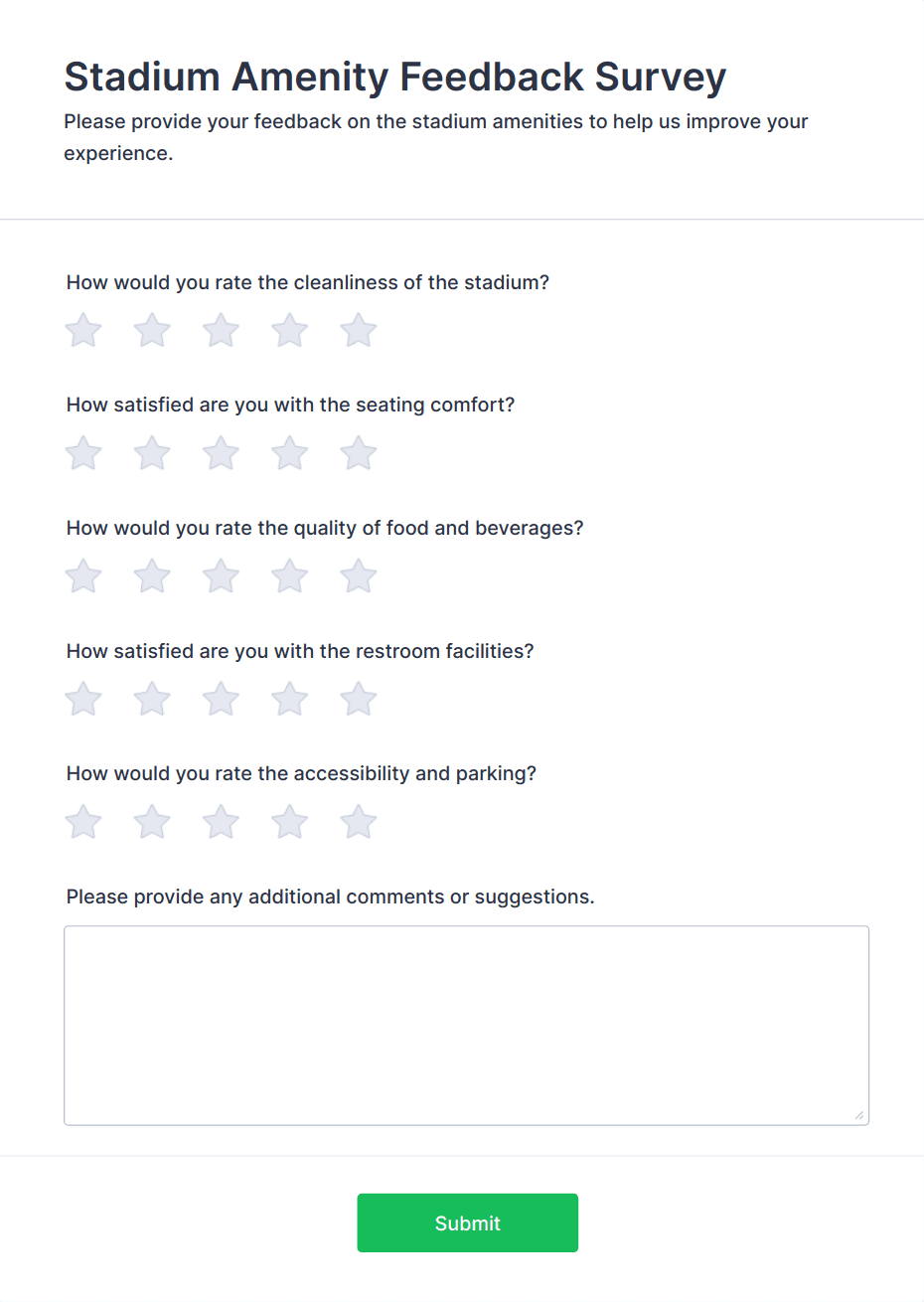 - Open-ended comment boxes for suggestions and detailed feedback
