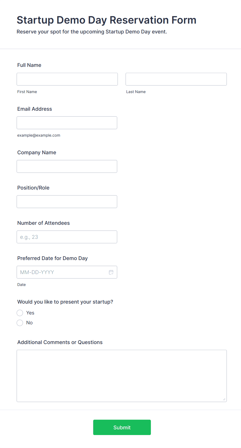 • Workshops and training sessions: Register participants, gather skill levels, and manage waitlists.