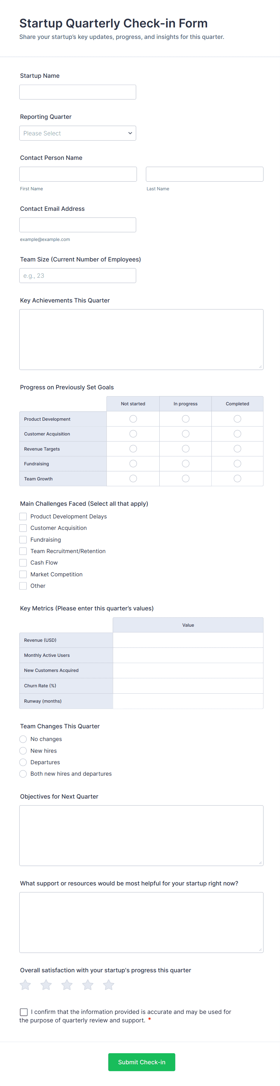 • Basic Fields: Name, date, email, short/long text, dropdowns, and checkboxes.