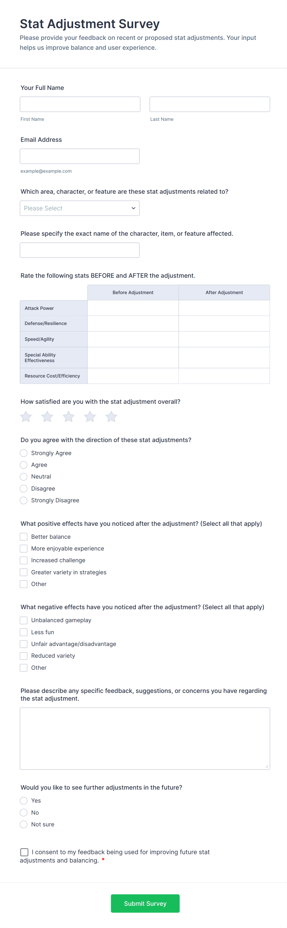 • Beta feedback forms may require fields for bug reporting and suggestions, while ongoing improvement surveys might focus on long-term user experience.