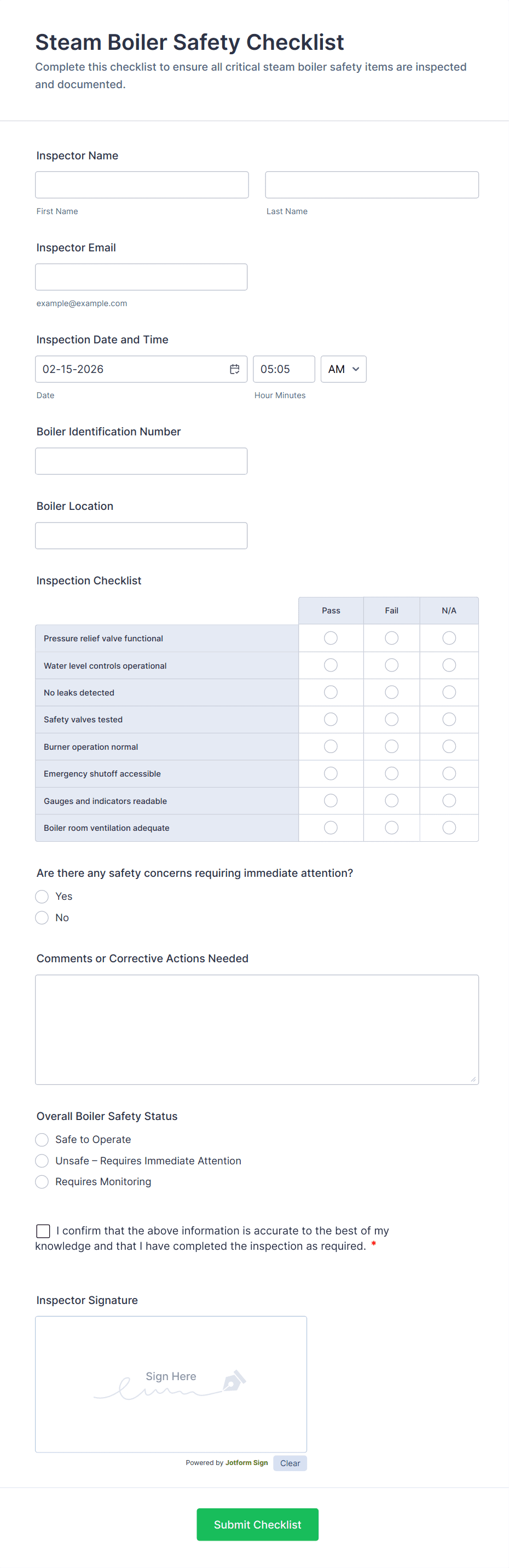 By following these steps, you can create a comprehensive Safety Inspection Form that streamlines your inspection process, enhances compliance, and supports a safer work environment.
