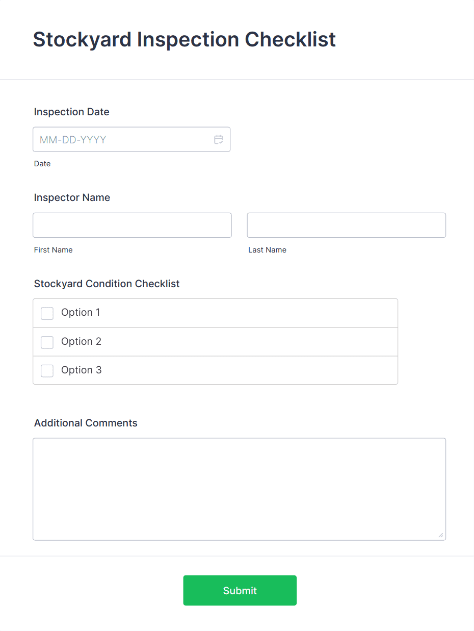 - Environmental Inspections: Might need GPS location fields, dropdowns for compliance status, and file upload options for supporting documents.