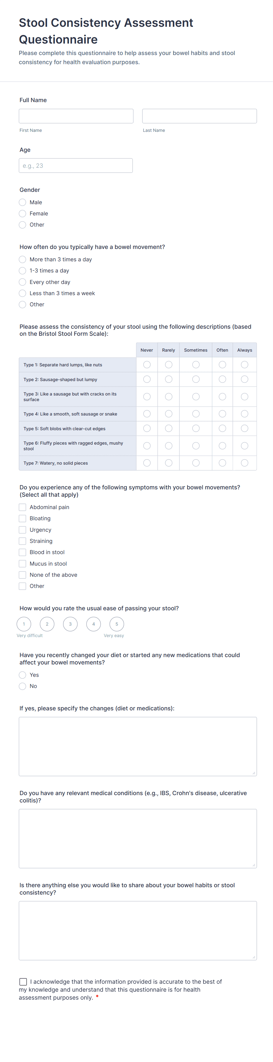 - Research Questionnaires: Require consent forms, demographic data, and study-specific queries.