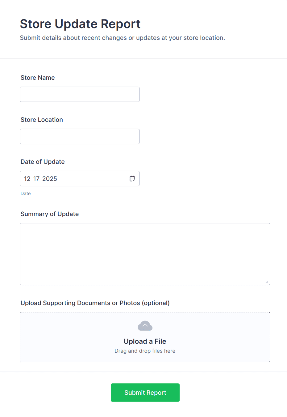 • Conditional Logic: Show or hide fields based on previous answers to streamline the reporting process.