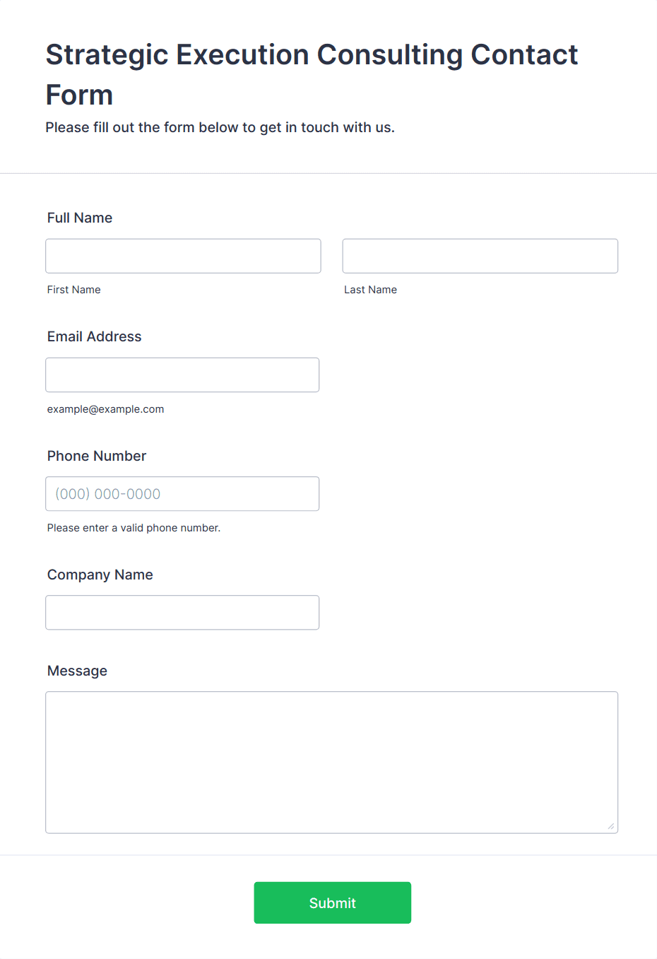 • Client Intake Forms: Focus on collecting contact details, business background, and initial goals.