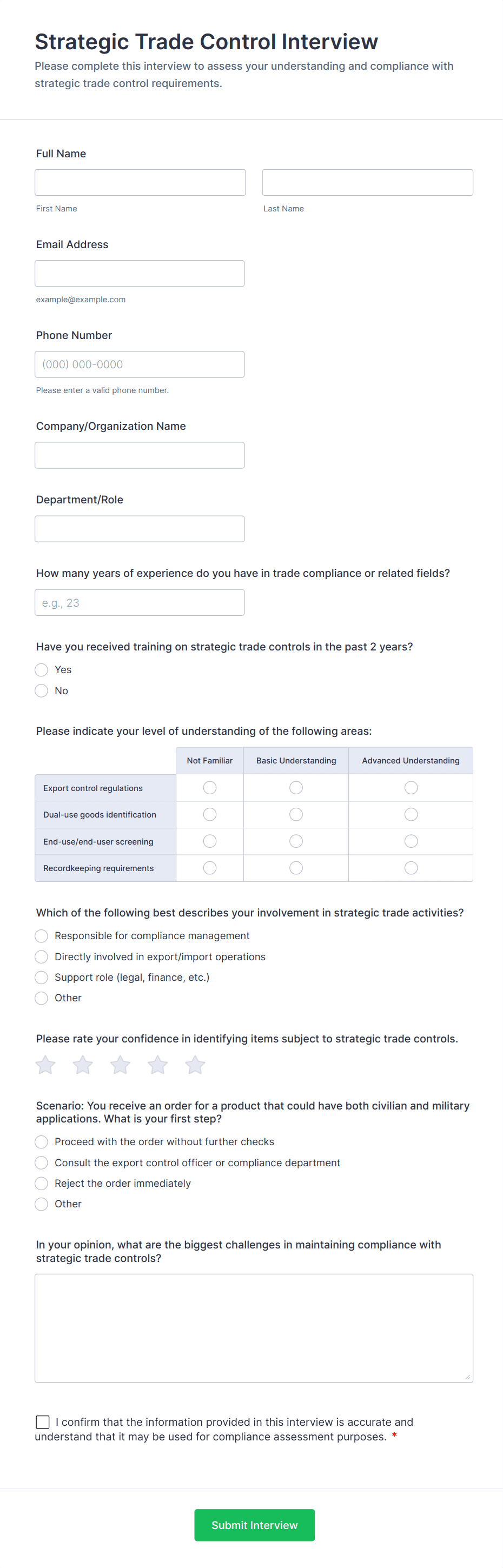 Responsive Interview Questionnaire Form