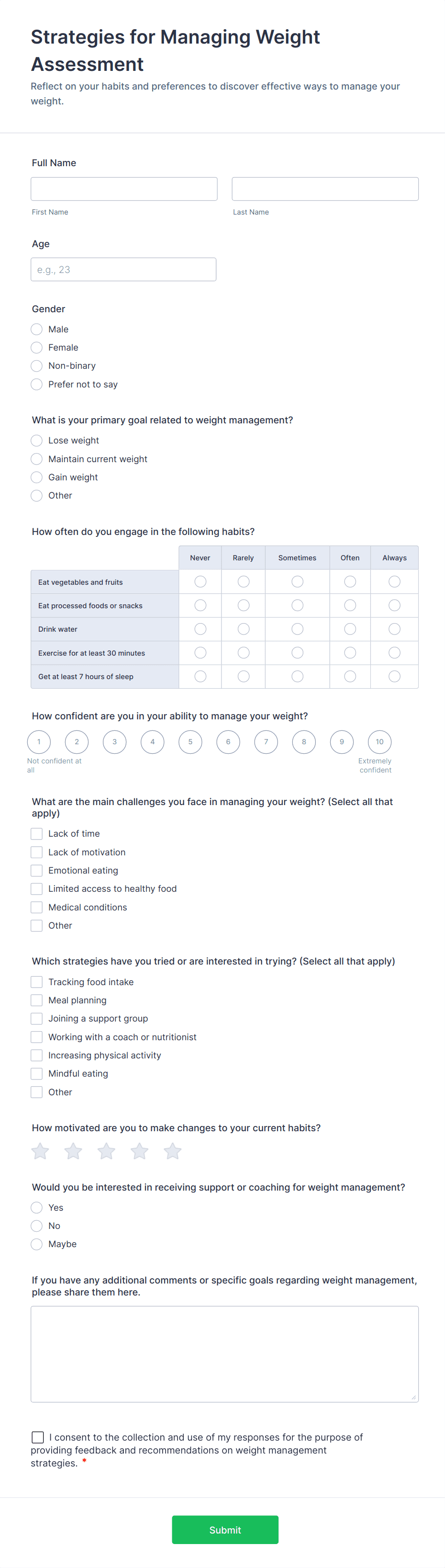 Anyone can use these forms, including patients, caregivers, healthcare professionals, fitness coaches, nutritionists, and organizations running wellness programs.