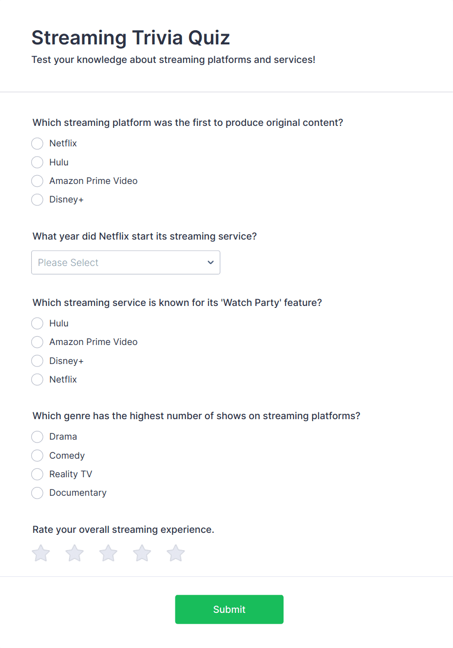 A Trivia Quiz Form is a versatile tool that can be adapted to various contexts and objectives, serving as a fun, interactive, and engaging way to entertain, educate, and connect with audiences.