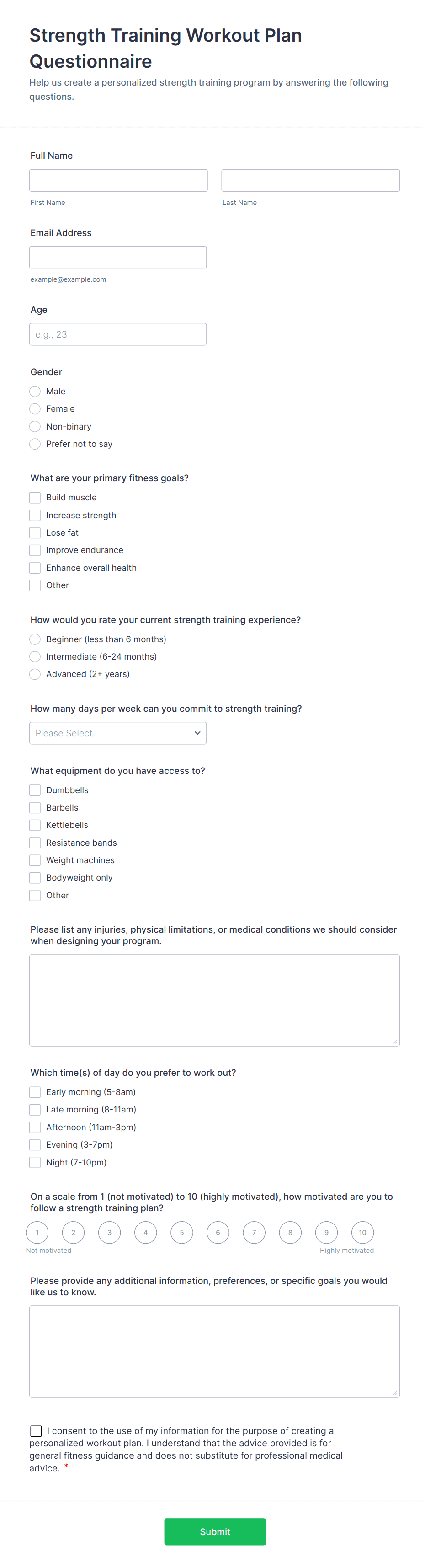 Personal Training Consultation Questionnaire