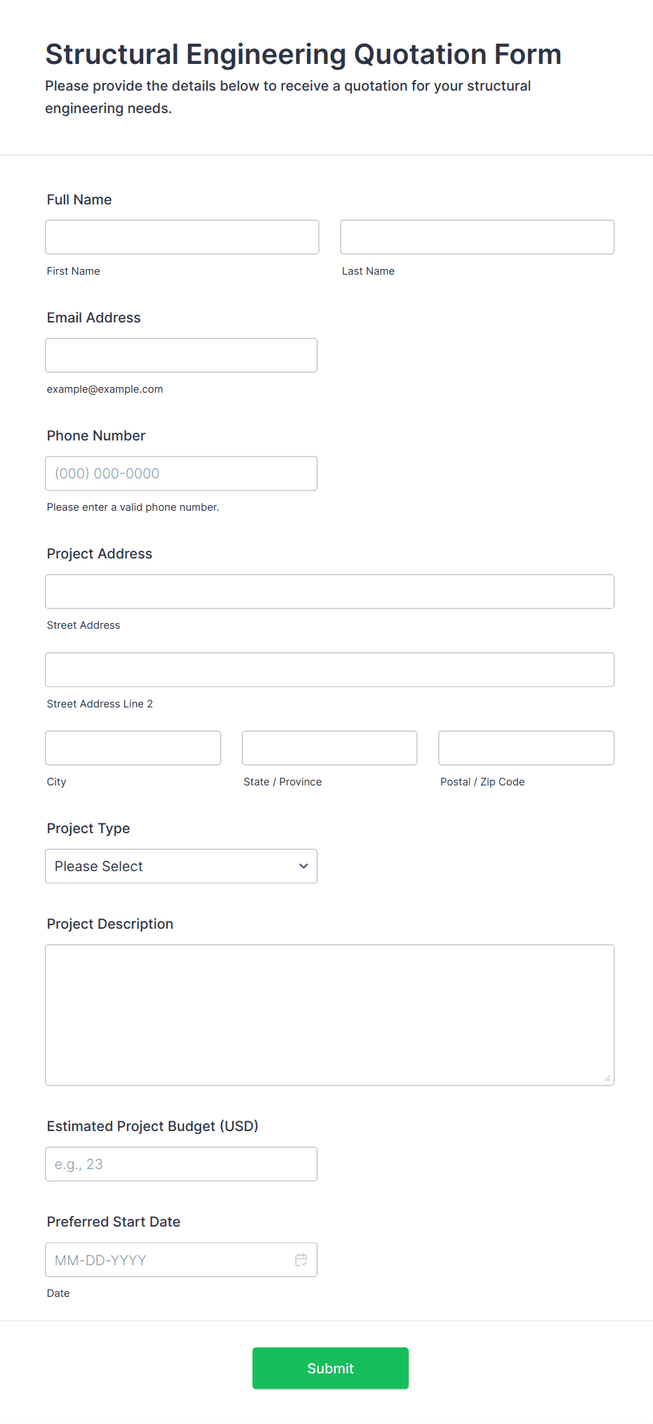 • Service Bookings: Forms might require date/time pickers, service options, and customer contact details.