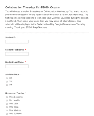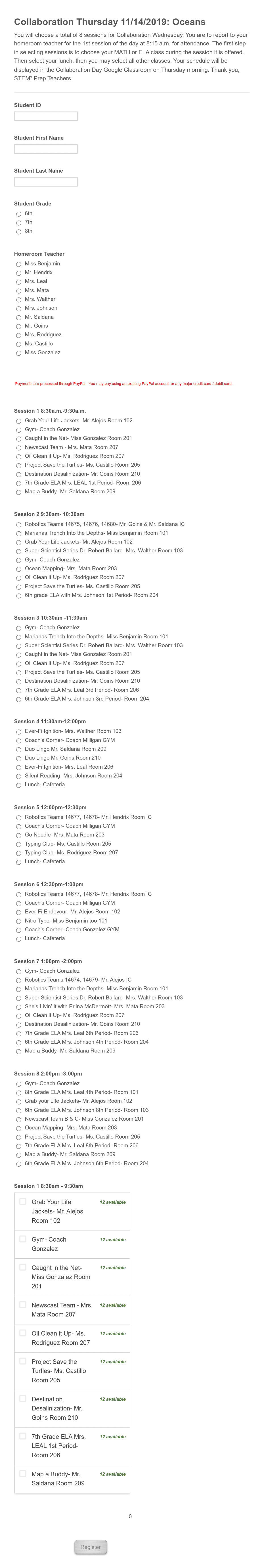 - Session or Workshop Selection (dropdowns or checkboxes)