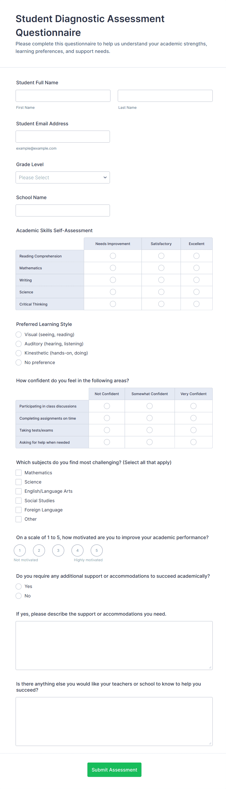 Student assessment forms support formal evaluation, ongoing progress tracking, and structured feedback. Below are common ways these forms are used and the challenges they help solve.