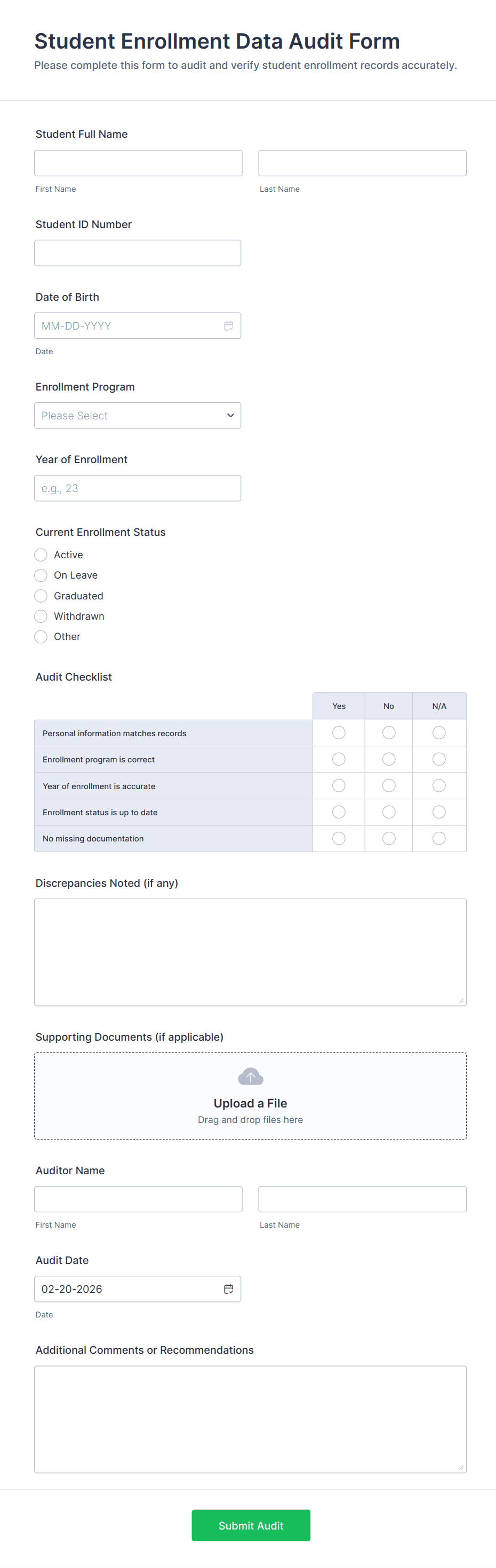 Student Enrollment Forms are essential tools used by educational institutions to collect and organize information from prospective or returning students. These forms streamline the process of registering students for schools, colleges, training programs, extracurricular activities, or special courses. They typically gather key details such as personal information, academic history, emergency contacts, and consent agreements. Whether for K-12 schools, universities, language academies, or summer camps, Student Enrollment Forms help administrators efficiently manage admissions, track student data, and ensure compliance with institutional or governmental requirements.