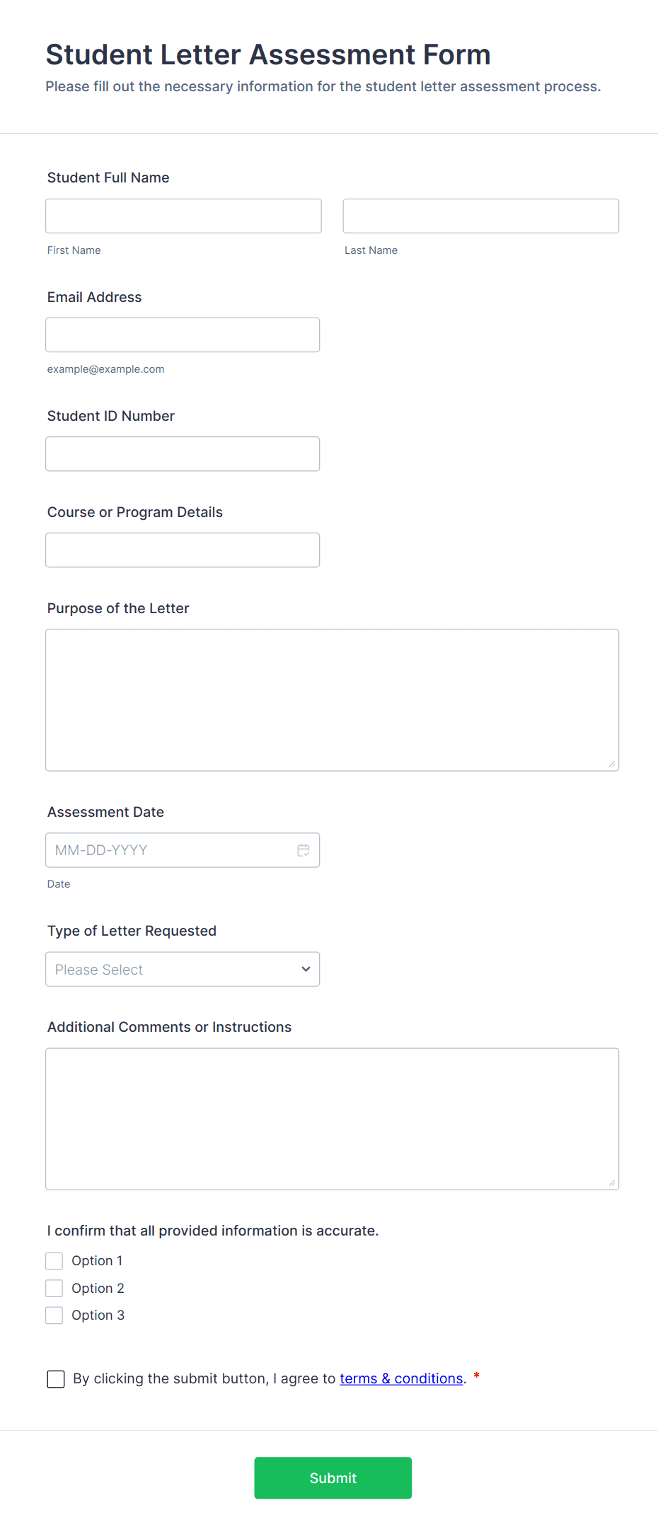 3. What information is typically included in student assessment forms?