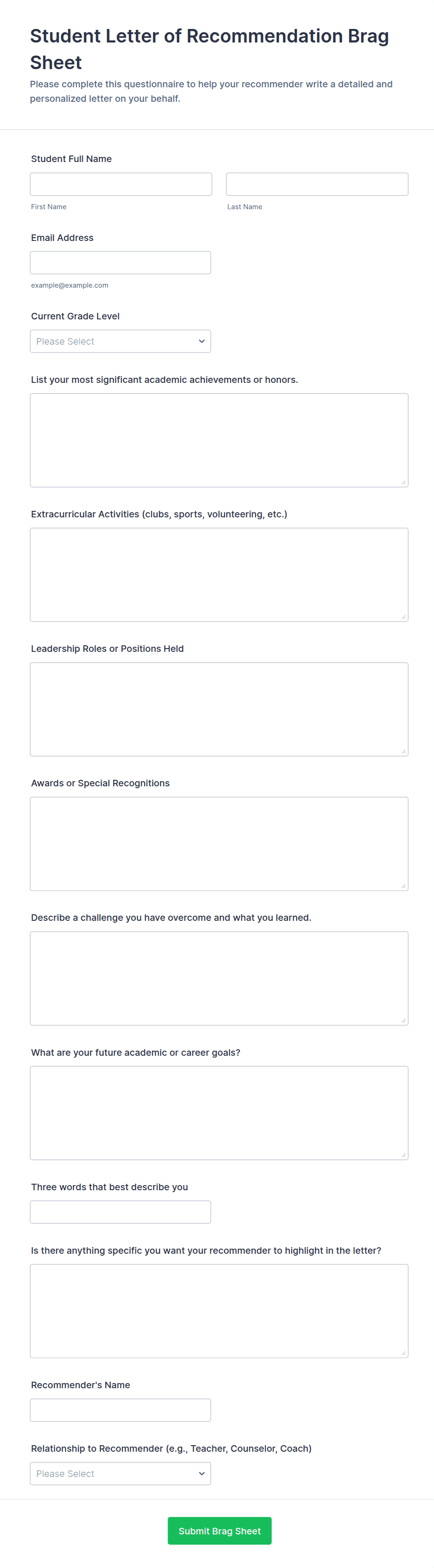Student Recommendation Form