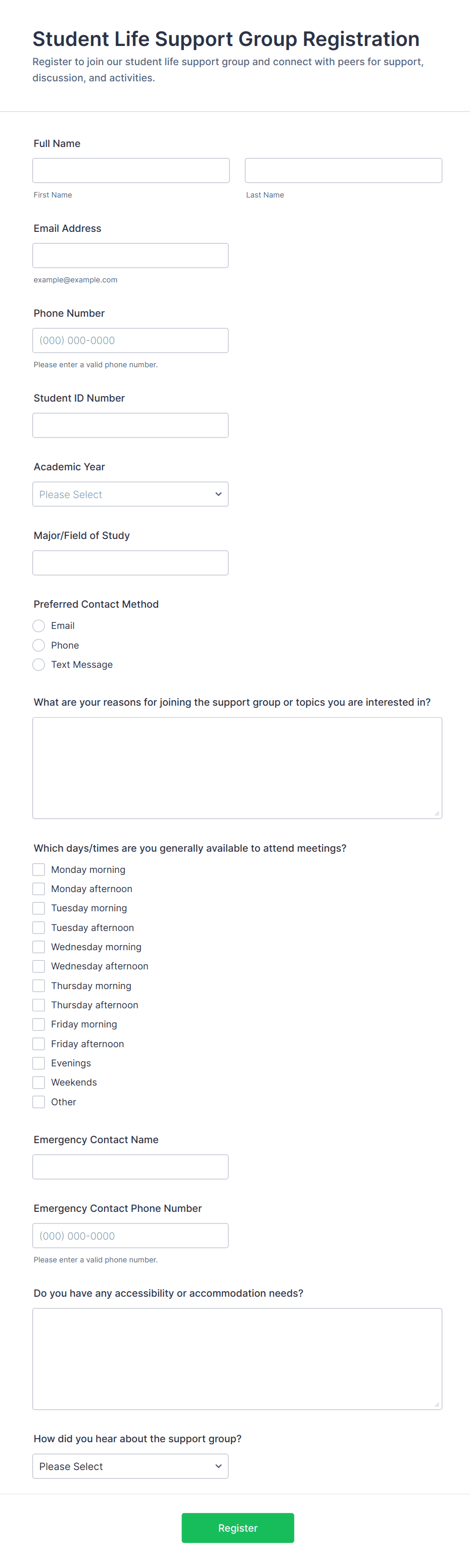 Conditional logic helps reduce unnecessary questions. For example, show follow-up questions only if someone reports high stress, low mood, or specific concerns. This makes the form feel shorter while still capturing important details.