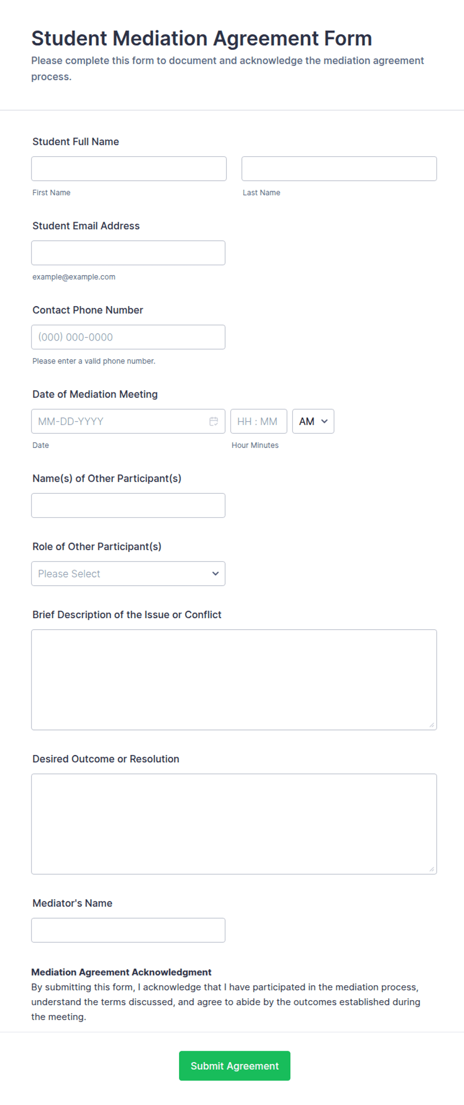 Improve your school counseling office’s workflow with powerful School Counselor Forms from Jotform. Whether you’re tracking incidents, collecting scholarship applications, or conducting behavior assessments, collect all the data you need with online forms — then manage it in a powerful database that lets you view submissions in a calendar, spreadsheet, or individual cards for every student. All of our form templates are easy to customize with our no-code builder, so you can add or remove form fields and update visual elements to create the perfect form in minutes. Make the switch from paper forms to online forms and get organized with online School Counselor Forms.