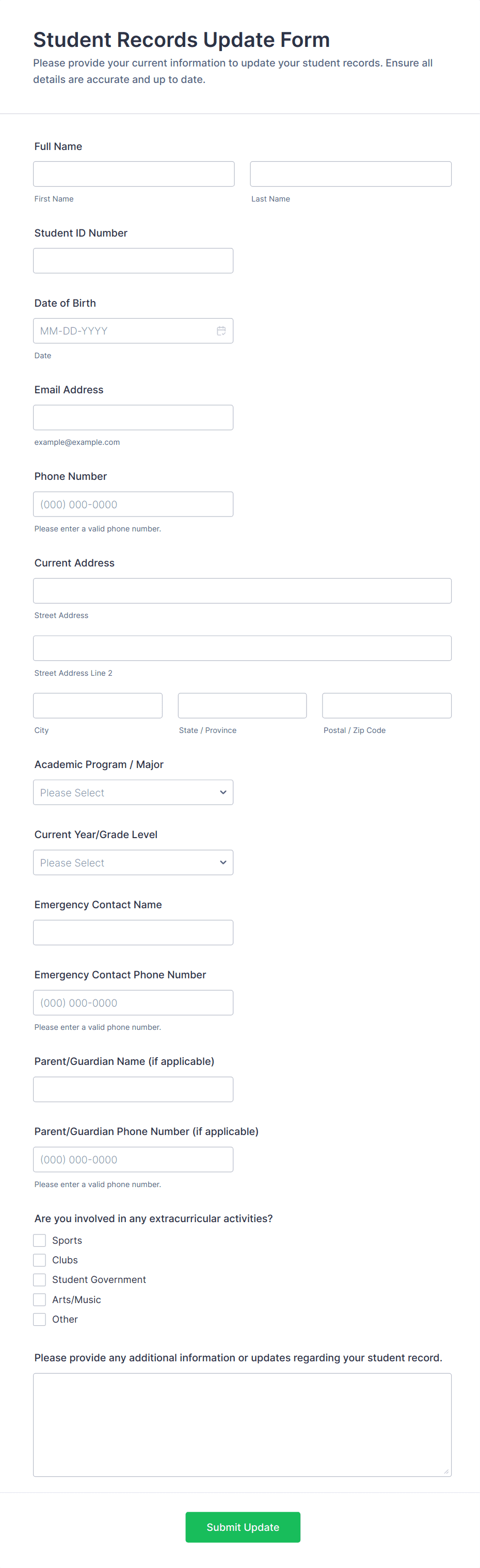Student Information Collection Form