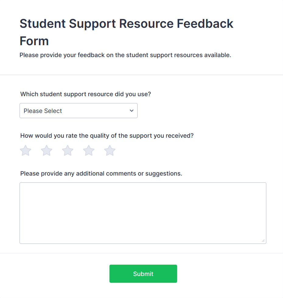 • Product feedback forms may include questions about usability, features, and likelihood to recommend.