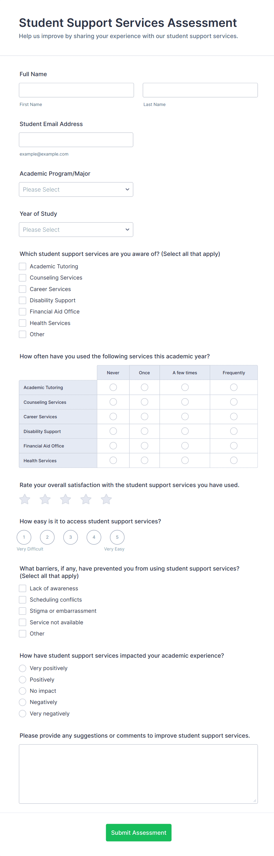 Student assessment forms support formal evaluation, ongoing progress tracking, and structured feedback. Below are common ways these forms are used and the challenges they help solve.