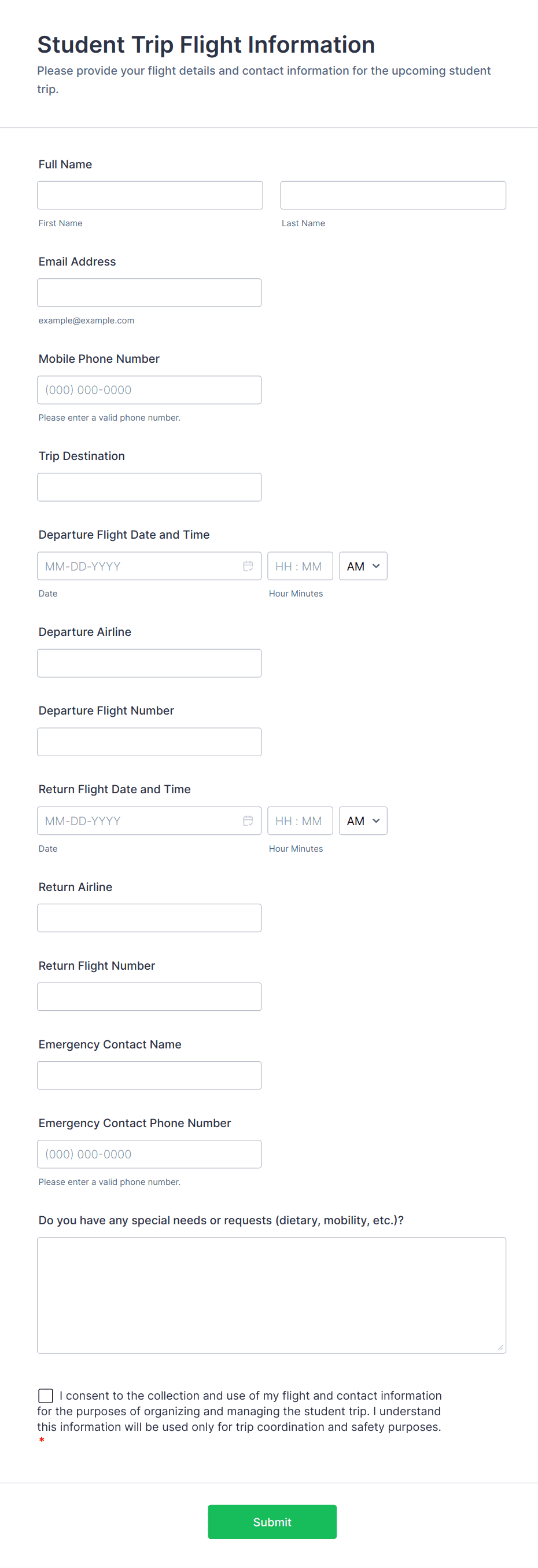 An education form template is a pre-designed online form tailored for academic purposes, such as student registration, feedback collection, event sign-ups, and more. These templates help schools and educators collect and manage information efficiently.