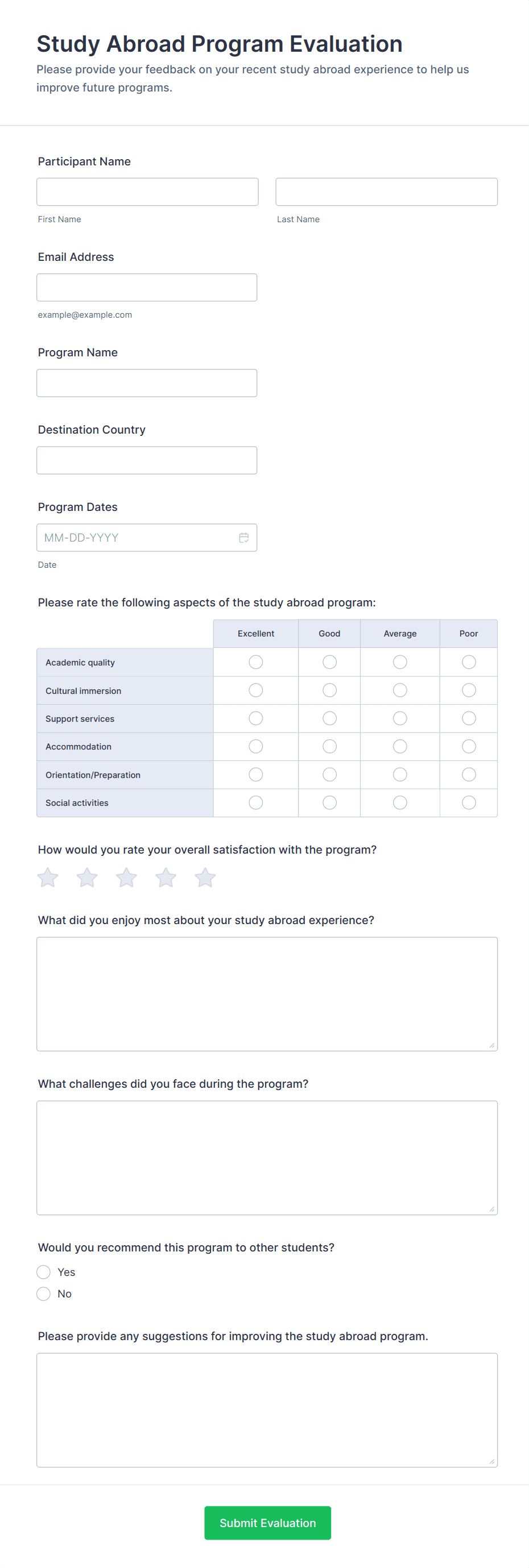 • For teacher or staff surveys: Include self-assessment fields, peer review sections, and narrative response options.