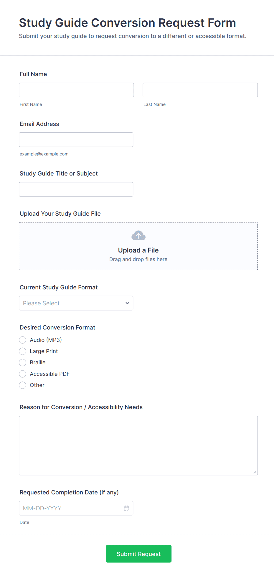 • Support Request Forms: Combine file upload with detailed problem description fields and contact information.
