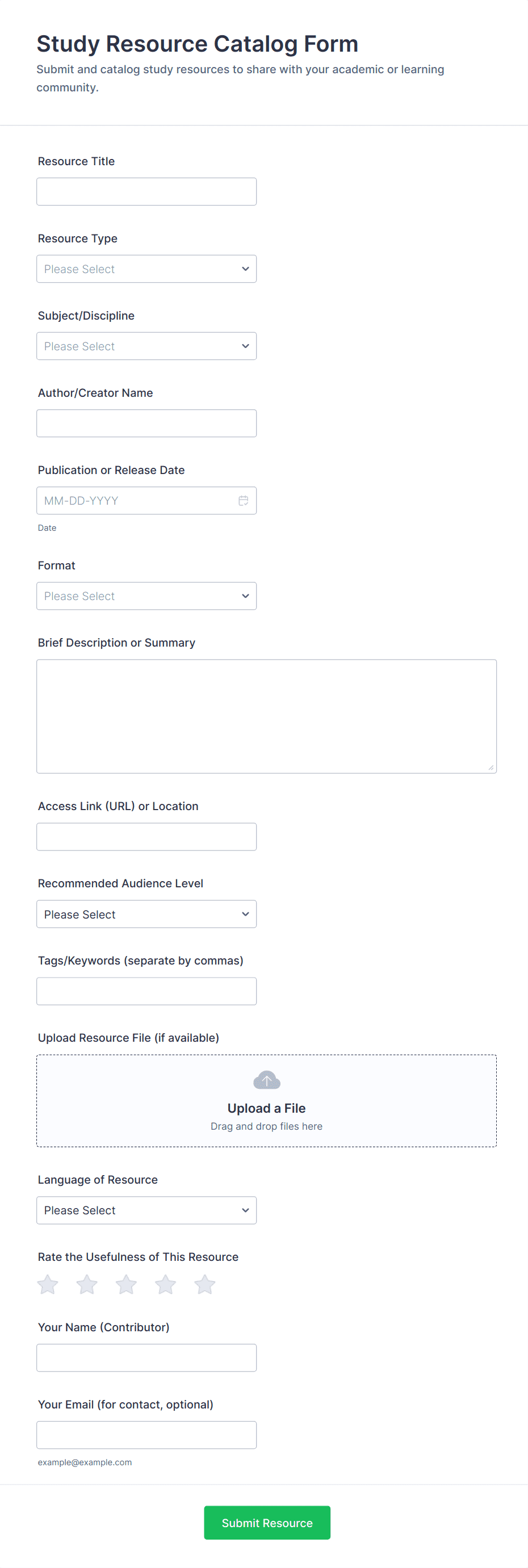 A suitable Form to learn more about your student's perspective and how they experienced the course through customizable widgets allowing your students to rate and evaluate the course and how it went for the semester as a whole.
